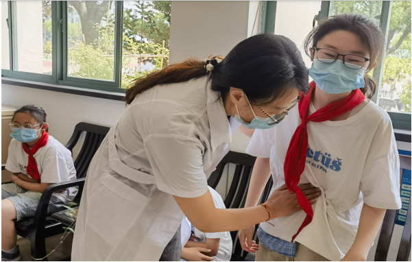 本次演练模拟的是五年级6班班主任发现几名学生有恶心、呕吐、腹痛、腹泻等症状,保健医生初步诊断为食物中毒。于是,学校立即启动食物中毒应急预案。学校领导接到学生疑似食物中毒报告后,立即赶赴现场查看并控制现场。小组成员按职责分工紧张有序地开展急救工作,送医就诊,封锁现场,做好学生排泄物、膳食留样、炊事用具的保留待查工作,同时向上级部门报告。